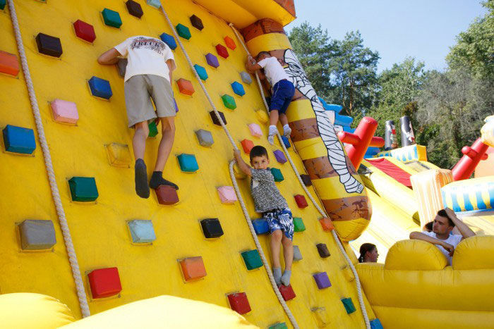 Досить крута стіна «піраміди» обладнана різнокольоровими камінчиками – надувними сходами. Нехай дітлахи, чіпляючись за ці виступи, спробують забратися на її вершину!