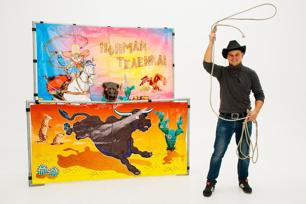 У центрі атракціону – пластикова голова бичка із великими рогами! Спритно закиньте ласо на його роги та отримайте заслужені оплески інших гостей! Здається простим, насправді завдання досить складне. Тут потрібні і тренування, і вправність.
