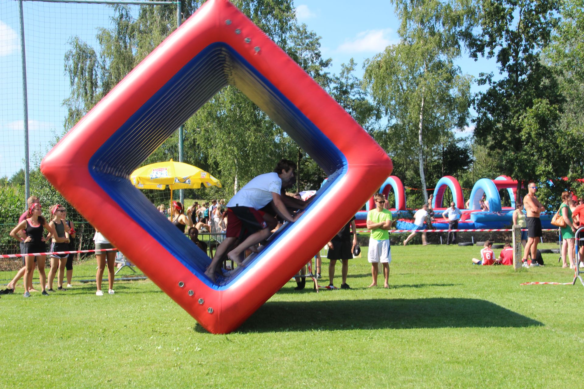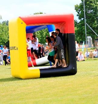 Величезний надувний куб не вдасться зрушити з місця поодинці. Нехай ваші гості запросять інших «білок» – своїх товаришів. 4-5 людей вже складуть сильну команду і зможуть привести куб у рух.
