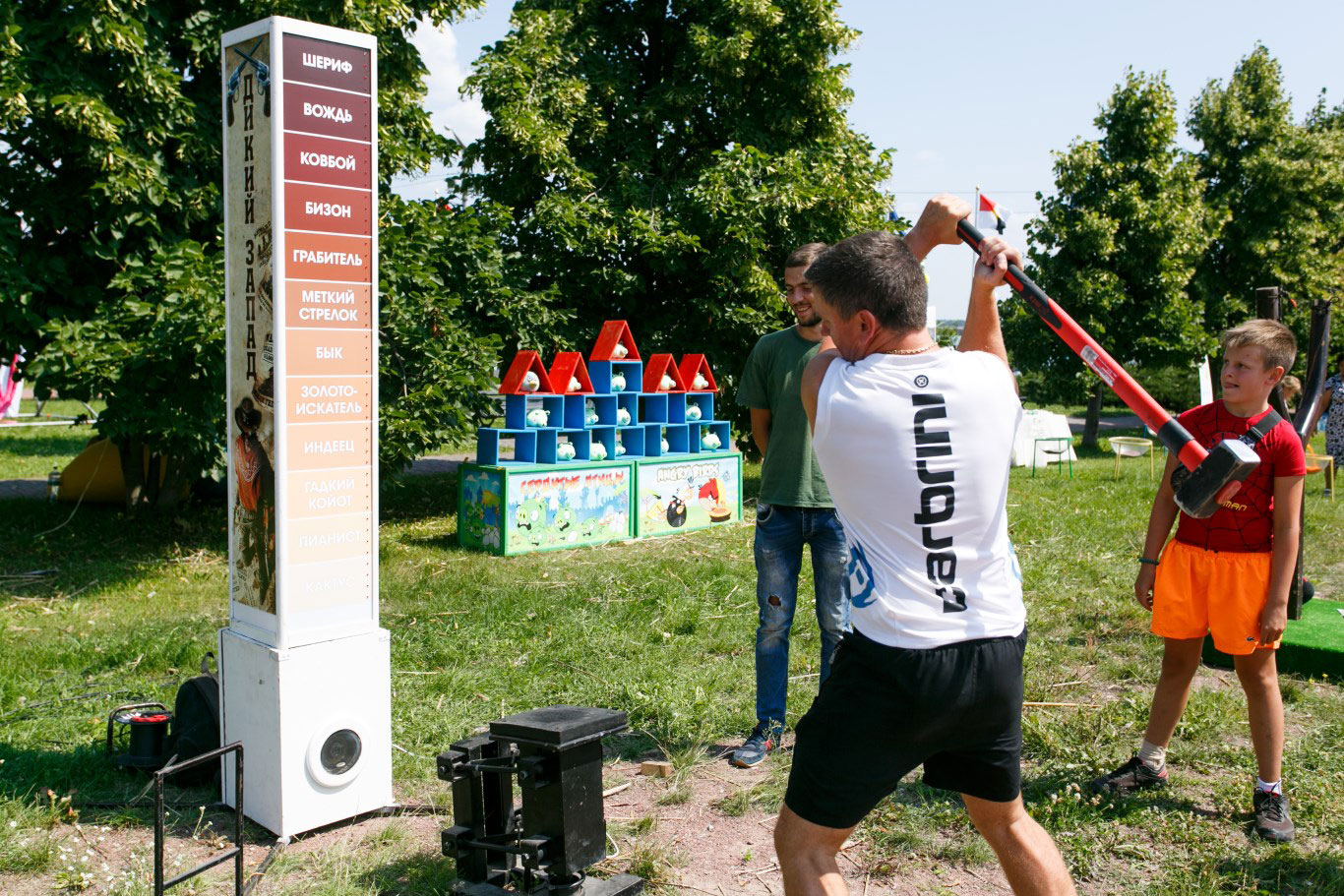 Шериф чи Піаніст?Силомір "Дикий Захід" оформлений у ковбойському стилі. Шкала сили ударів представлена характерними для мешканців Техасу персонажами. Так, найсильніші удари по шкалі силоміра роблять "Шериф" , "Вождь" та "Ковбой" . А слабакам силомір дасть прізвиська «Кактус» , «Піаніст» та «Гидкий койот» .
