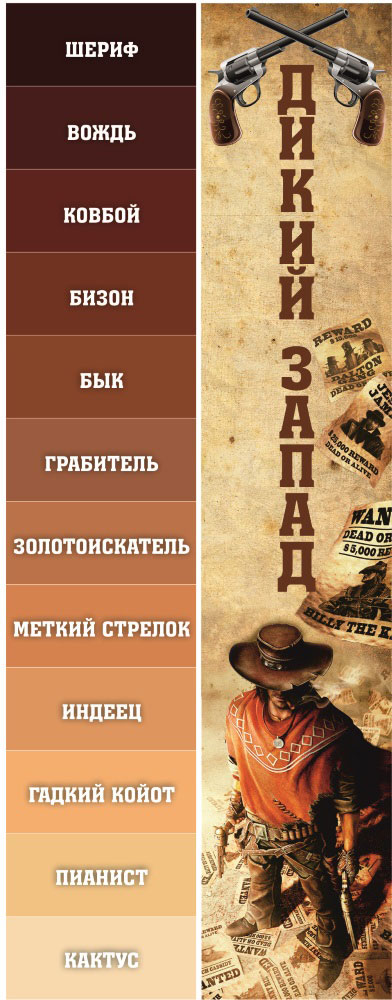 Він оснащений усім необхідним для створення антуражу – смішними персонажами на шкалі, візуальним оформленням під стиль Дикого Заходу, вестерн-музикою і навіть віршами про щасливих ковбоїв або невдах золотошукачів!