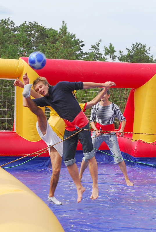 Оригінальна гра на футбольну тематику порадує ваших гостей та подарує заряд позитивного настрою. "Веселий футбол" - це збільшена копія "настільного футболу" з живими гравцями . Щось новеньке, а тому цікаве!